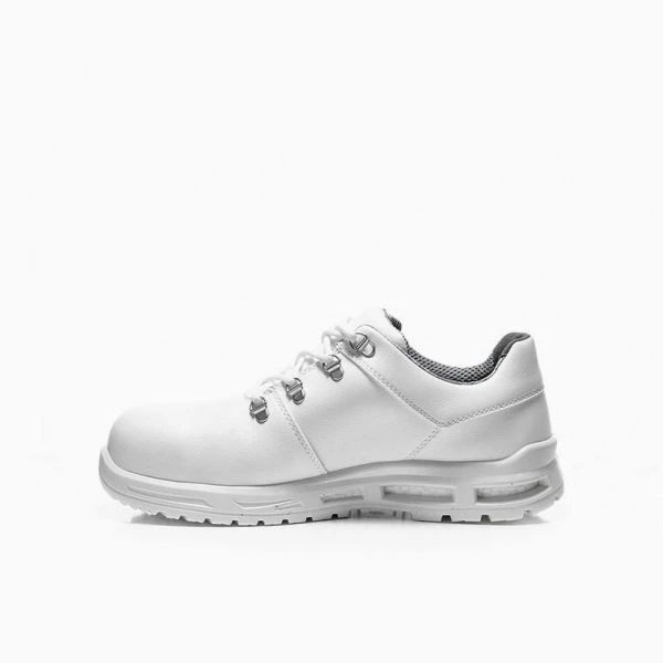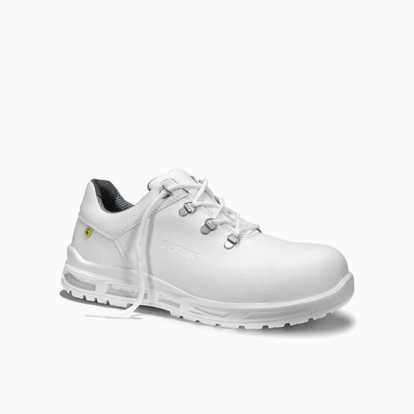 Der BRANDON XXTM white Low ESD S3 bietet leichtgängigen Fußschutz und bringt seinen Träger sicher durch den stressigen Berufsalltag. Klar, durch die weiße Farbgebung eignet er sich besonders für einen Job in Pflege und Krankenhaus oder bei der Verarbeitung von Lebensmitteln. Und er bringt dafür auch die notwendigen Eigenschaften mit: das Obermaterial aus hydrophobierter Mikrofaser ist schnell trocknend und abriebfest, das Innenfutter aus atmungsaktivem Textil überzeugt durch hohe Schweißaufnahme und -abgabe, die Zehenschutzkappe aus Kunststoff bietet Schutz gegen Stoßeinwirkungen, der metallfreie Durchtrittschutz verhindert das Eindringen von spitzen oder scharfkantigen Gegenständen am Boden, und der Sohlenkern aus Infinergy® von BASF sorgt für hervorragende Dämpfung, was bei langem Gehen und Stehen eine echte Wohltat ist. Weil hier die Laufsohle WELLMAXX TRAINERS MONO verarbeitet wurde, die wie der Name andeutet eine Einschichtensohle ist, macht das den BRANDON XXTM white Low ESD S3 noch mal ein ganzes Stück leichter. So was beflügelt doch im stressigen Berufsalltag! Zu haben ist der SRC-zertifizierte und ESD-fähige Sicherheitsschnürstiefel im Größengang 36 bis 48.
