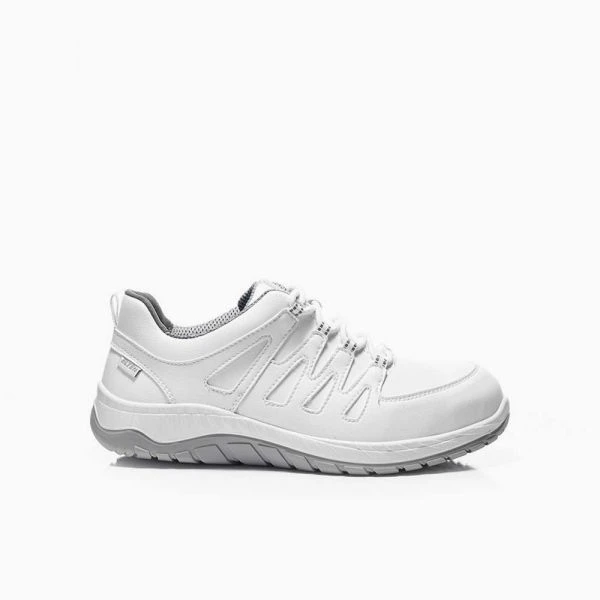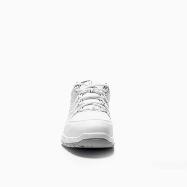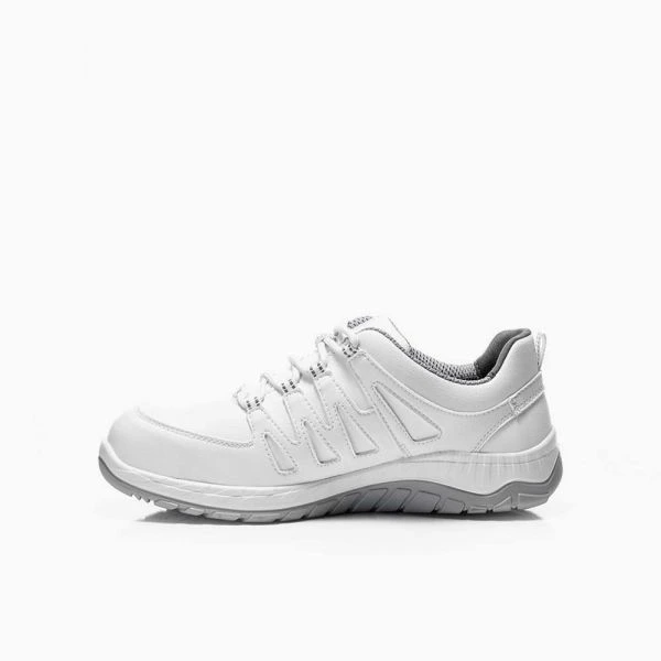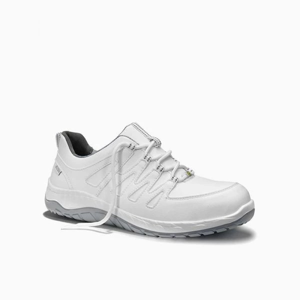 MADDOX white Low ESD S3 heißt er – und er kann alles, wofür die Sicherheitsschuhe der ELTEN WELLMAXX-Serie so geschätzt werden. Seine TPU/PU-Laufsohle MAXXIMO ist eine Zweischichten-Profilsohle, ergänzt wird sie von der ganzflächigen Einlegesohle SPORTIVE ESD grey. Das bedeutet: Stoßabsorption und Tragekomfort sind top. Das Textilfutter im Inneren ist atmungsaktiv und damit auch sehr fußfreundlich, denn Feuchtigkeit wird gut aufgenommen und auch wieder abgegeben. Im Sohlenkern entfaltet das Infinergy®-Material von BASF einen wohltuenden Dämpfungseffekt beim Gehen und gibt Energie wieder an den Träger zurück. Zehenschutzkappe aus Stahl, metallfreier Durchtrittschutz und ESD-Fähigkeit sind beim MADDOX white Low ESD S3 auch mit von der Partie. Übrigens: die lederfreie Ausstattung macht diesen Schuh besonders interessant für Menschen, die gegen die beim Gerben verwendeten Gerbstoffe allergisch sind.