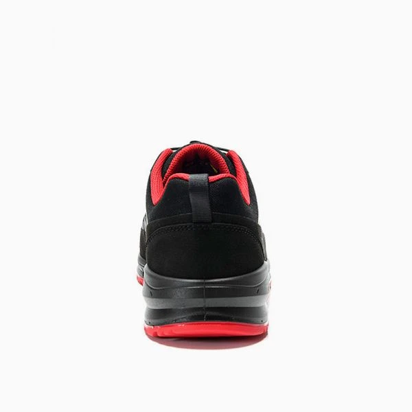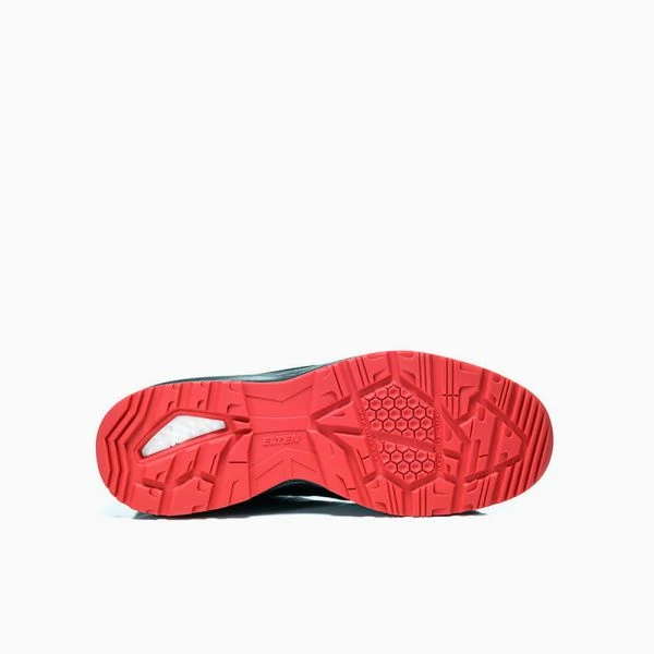 Der Marten XXSports Pro black Low ESD S3 fällt direkt ins Auge. Das schwarz-rote Design in Sneaker-Optik überzeugt aber nicht nur durch sein Äußeres. So verfügt der ESD-fähige Sicherheitshalbschuh über eine Zehenschutzkappe aus Stahl und einen metallfreien Durchtrittschutz. Er sitzt dank seines Obermaterials aus hydrophobiertem Mikrofaser- und Textilmaterial leicht am Fuß und hat im Sohlenkern das Material Infinergy® von BASF verarbeitet. Die SRA-zertifizierte WELLMAXX SPORTS Sohle aus TPU/PU hat dadurch eine besonders gute Dämpfung, sodass ein Großteil der aufgewendeten Energie beim Laufen wieder an den Träger zurückgegeben wird. Dazu hat der Schuh aber noch weitere Eigenschaften, die den Komfort merklich erhöhen. Das atmungsaktive Textilfutter sowie die gepolsterte Lasche sorgen für das Wohlbefinden des Fußes. Das elastische Schnürsystem mit Schnellarretierung ist praktisch und bequem.