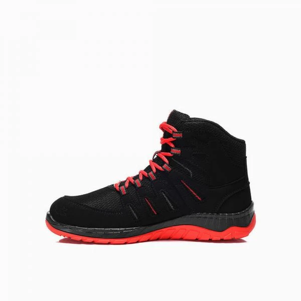 Sicherheitkommt beim Maddox black-red Mid ES S3 nicht zu kurz: eine Stahlkappe schütztden Vorfußbereich vor Gefahren von oben. Die metallfreie Durchtritthemmung schützt vor spitzen undherumliegenden Gegenständen und wehrt Gefahren von unten erfolgreich ab. Dasatmungsaktive Textilfutter des ESD-fähigen Sicherheitsschuhs sorgt für einausgewogenes Fußklima. Das Obermaterial aus hydrophobiertem Mikrofaser undTextilmaterial macht den Schuh strapazierfähig, die TPU/PU Laufsohle ist SRC zertifiziert und gibt damit auchauf rutschigen Böden sicheren Halt. Erhältlich in den Größen 35-48.