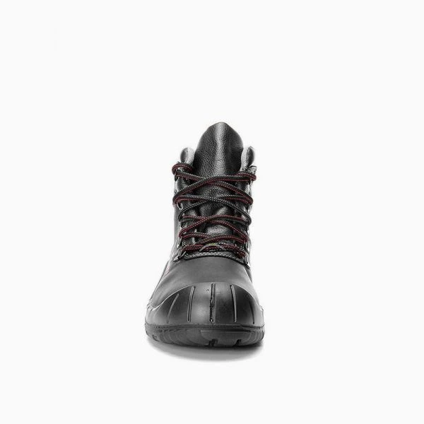 - Ein halbhoher Sicherheitsstiefel mit Stahlkappen