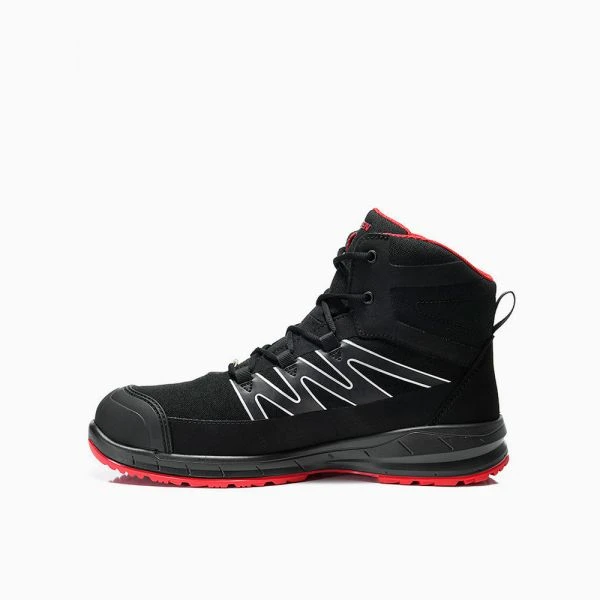 Der Marten XXSports Pro black Mid ESD S3 kombiniert Tragekomfort mit höchsten Schutz. Das atmungsaktive Textilfutter verschafft einen hohen Tragekomfort und ein angenehmes Klima im Schuh. Die SRA-zertifizierte TPU/PU Sohle WELLMAXX SPORTS verfügt über die Infinergy® Technologie von BASF und nimmt beim Gehen einen Großteil der aufgewendeten Energie auf, um diese wieder an den Träger zurückzugeben. Das schont die Gelenke und schützt den Träger vor frühzeitiger Ermüdung. Ergonomisch geformte Stahlkappen bewahren Ihre Füße vor Stoß- und Druckbeanspruchung, der metallfreie Durchtrittschutz schützt die Füße von unten optimal. Der robuste Sicherheitsstiefel ist äußerst wasserabweisend dank eines Obermaterials aus hydrophobierter Mikrofaser. Den Schutz der Füße und vor Abnutzung übernimmt bei diesem Schuh zusätzlich eine TPU Überkappe. Der SRA-zertifizierte und ESD-fähige Sicherheitsstiefel kommt lederfrei daher und ist den Größen 35 bis 48 erhältlich.