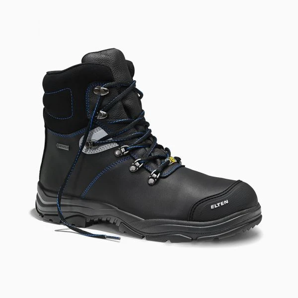 Robust und bequem zeigt sich der MASON Pro GTX Mid ESD S3 aus der ERGO-ACTIVE Serie von ELTEN. Alle Modelle dieser Reihe sind jeweils in drei verschiedenen Passformen erhältlich. Der Sicherheitsschnürstiefel ist bei jedem Wetter die richtige Wahl, weil er durch das Futtermaterial GORE-TEX wasserdicht und mit einem Obermaterial aus Rindleder äußerst robust ist. Sollten Gefahren von oben drohen, werden die Zehen des Trägers durch eine Stahlkappe geschützt. Zudem sorgt eine metallfeie Durchtritthemmung in diesem ESD-fähigen Sicherheitsstiefel für Schutz vor von unten eindringenden Gegenständen. Eine SRC zertifizierte PU/PU Laufsohle bewirkt Standsicherheit auf allen Untergründen.