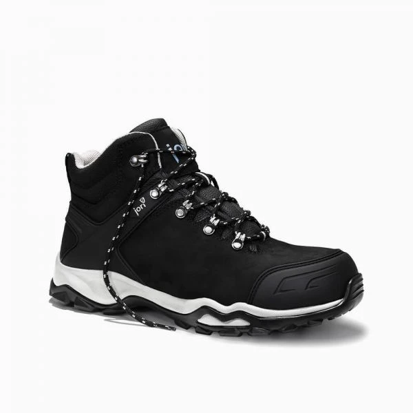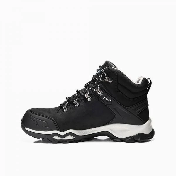 Mit dem jo_POWERFUL black Mid S3 von Sicherheitsschuhhersteller JORI macht der Trägeralles richtig. Der schicke schwarze Schnürfstiefel überzeugt durch sein schlankes Design und die hervorragenden Sicherheitseigenschaften. Das robuste Obermaterial aus hydrophobiertem Nubukleder ist wasser- und schmutzabweisend, das atmungsaktive Textilfutter sorgt für einen angenehmen Tragekomfort. Mit der TPU Überkappe wird der Schuh vor frühzeitiger Abnutzung bewahrt. Eine Stahlkappe und die metallfreie Durchtritthemmung bewahren vor ernsthaften Verletzungen durch herabfallende oder auf dem Boden liegenden, spitze Gegenstände. Die grobstollige Laufsohle sorgt für die nötige Standfestigkeit inunwegsamen Gelände.